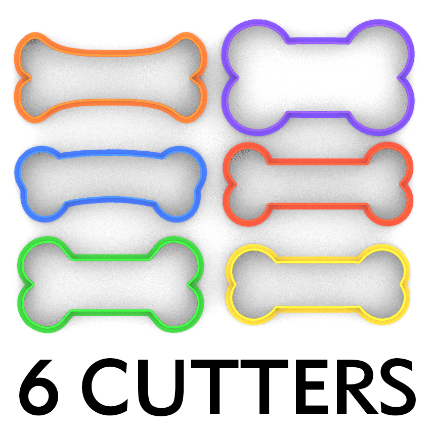 BONES – PACK OF COOKIE CUTTERS – 6 MODELS PARTY DOGS, PAW PATROL, BONES, ANIMAL PRIZES – DOUGH AND CLAY CUTTER – 8CM